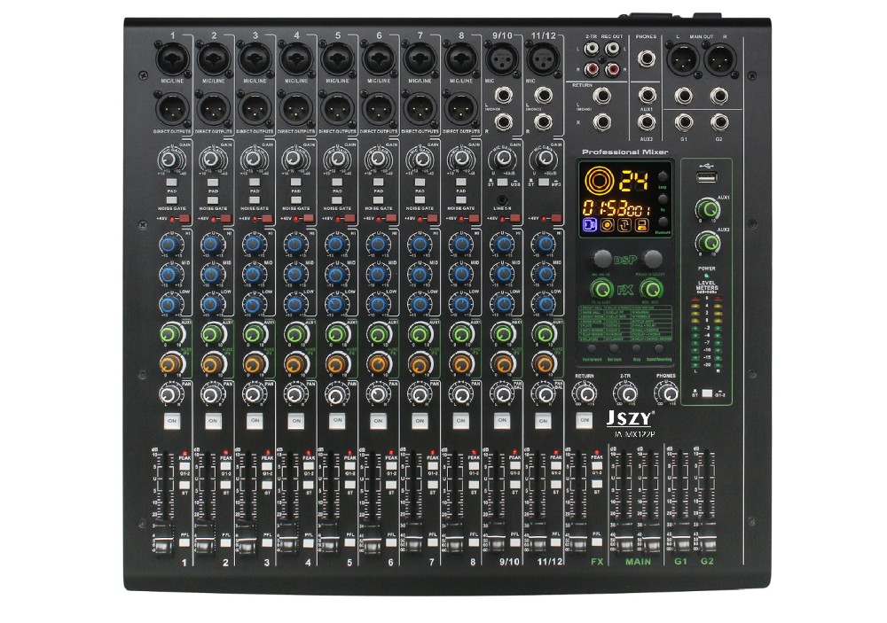 产品特点:1、12路总输入:10路话筒/线路输入,2路线路输入,1路TAPE输入,1路REC输出,···..